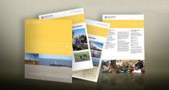 Folletos plegados, dípticos, trípticos y cuadrípticos en vertical, horizontal, apaisado, en zig zag, acordeón, etc. En papel Couché 115, 150, 200, 250 ó 300 gr/m² con acabados plastificados en brillo o mate y barniz UV brillante.
